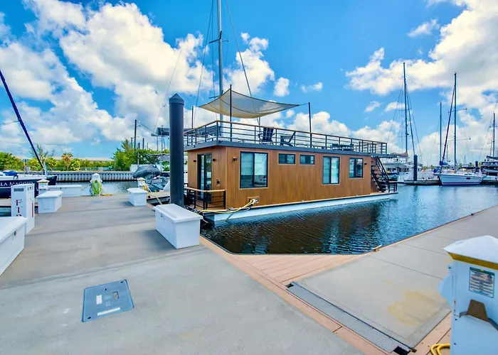 Nestled in the serene heart of Key West, Awai's Floating Villa offers a unique escape on the tranquil waters of Luxury Village. Just 10 km from Key West International Airport, this captivating houseboat immerses guests in a luxurious maritime ambiance, perfect for those seeking both adventure and relaxation. In terms of local attractions, the villa is conveniently located just 8.5 km from the Southernmost Point and 9 km from the iconic Mallory Square and Key West Aquarium. Such attractions place guests in the perfect position to explore the vibrant culture and natural beauty of the area, all while returning to the custom charm of Awai's Floating Villa. Embrace the subtropical paradise and experience an unforgettable getaway in this remarkable accommodation.